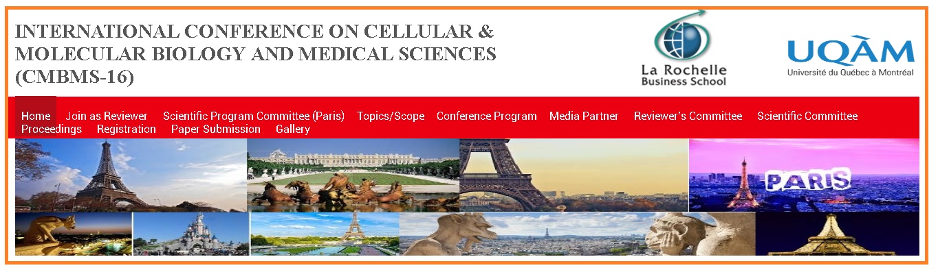 International Conference on Cellular & Molecular Biology and Medical Sciences (CMBMS-16) Sept. 21-22, 2016 Paris . France